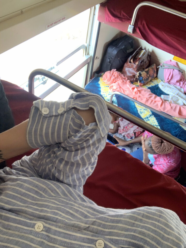 W oczekiwaniu na mój zaginiony bagaż, Dawid pokazał mi najbliższą okolicę, uczył podstawowych zwrotów w języku swahili, próbował przełamać mój lęk do wody, dużo spacerowaliśmy i rozmawialiśmy o życiu, buddyzmie i wolontariacie. Po dwóch/trzech dniach, Dawid dostał telefon z lotniska. Mój bagaż się odnalazł i czekał na odbiór. Nie pamiętam kiedy byłam tak szczęśliwa. Teraz mogliśmy wyruszyć w dalszą podróż. Przepakowałam się do plecaka, pojechaliśmy do hotelu bliżej dworca aby następnego dnia o 6 rano wsiąść do pociągu. W Afryce czas płynie nieco inaczej – „pole, pole” (powoli, powoli) Pociąg oczywiście był spóźniony, na szczęście tylko dwie godziny, ale nijak to się miało do całej podróży, która miała trwać minimiun 1,5 dnia. Z racji tego, że byliśmy jedynymi „mzungu” (człowiek rasy białej) w pociągu, nasze miejsca przydzielono blisko przedziału z obsługą oraz policją, aby zapewnić nam bezpieczeństwo. Mój przedział miał sześć łóżek, wszystkie zajęte przez mamy z dziećmi. Atmosfera była żywa i pełna energii, co choć dodawało podróży kolorytu, sprawiało, że trudno było wypocząć. Na szczęście pociąg miał wagon restauracyjny, gdzie mogliśmy coś zjeść i napić się, co było miłym przerywnikiem. Mimo rozgardiaszu podróż przebiegła bez większych problemów. Widoki za oknem zapierały dech w piersiach – Tanzania w całej swej okazałości prezentowała się przepięknie, a krajobrazy zmieniały się z każdym kilometrem. Przez okno mogłam podziwiać majestatyczne góry, zielone równiny i małe wioski tętniące życiem. Podczas postojów na różnych stacjach mieliśmy okazję kupić lokalne przekąski, świeże soki i owoce. Te chwile były niezwykle cenne – dawały możliwość poznania lokalnej kultury i zwyczajów z bliska, a także nawiązania krótkich, ale znaczących interakcji z mieszkańcami. Podróż była wyczerpująca, ale każdy moment spędzony w pociągu przybliżał mnie do celu i wzbogacał moje doświadczenia.